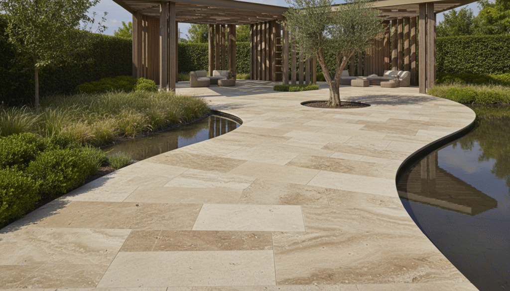 Travertin Naturpflastersteine, Farben, Großen, Formen, Texturen ve Verarbeitungen erhältlich’te bulunur, güvenilir bir şekilde verilişli ve şeffaf bir görünüm sağlar.