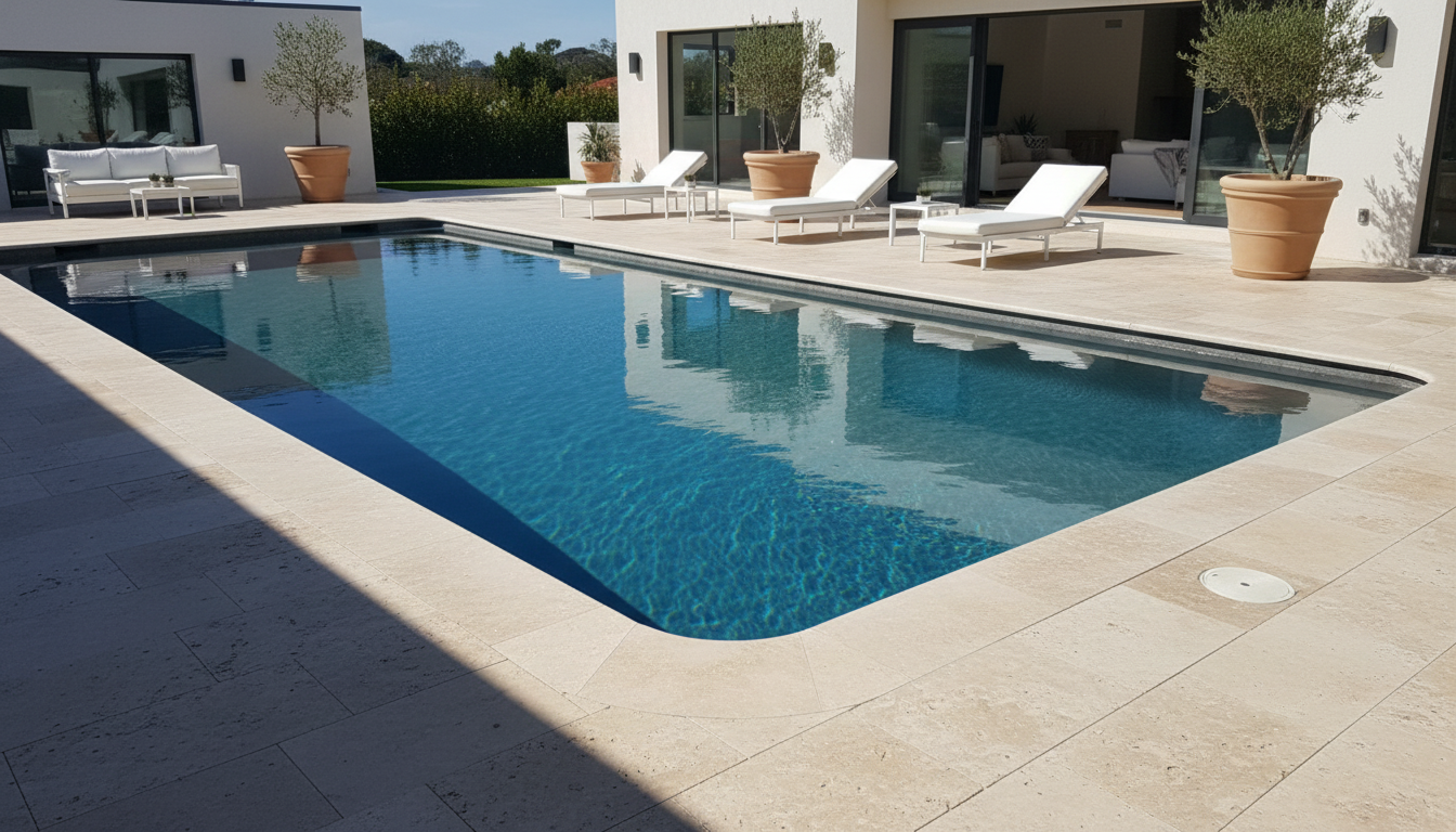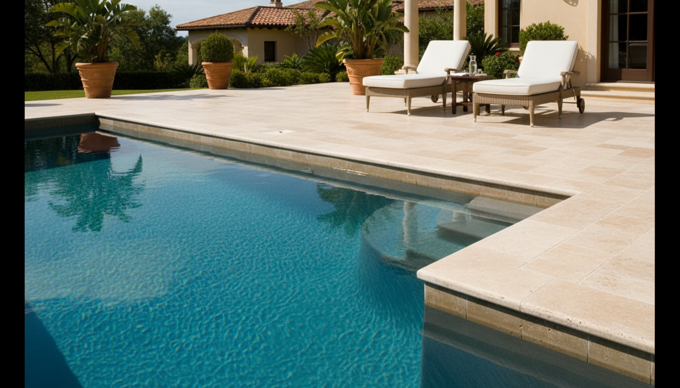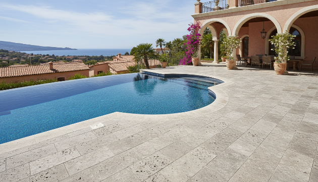 - Er ist anpassungsfähig! Travertin gibt es in so vielen Varianten, dass die Auswahl einer maßgeschneiderten Lösung ganz einfach ist! Ganz gleich, was Sie bevorzugen – ob traditionell oder modern – es gibt eine Farbe, ein Muster und einen Stil, der optimal zu Ihrer Poolterrasse passt.
