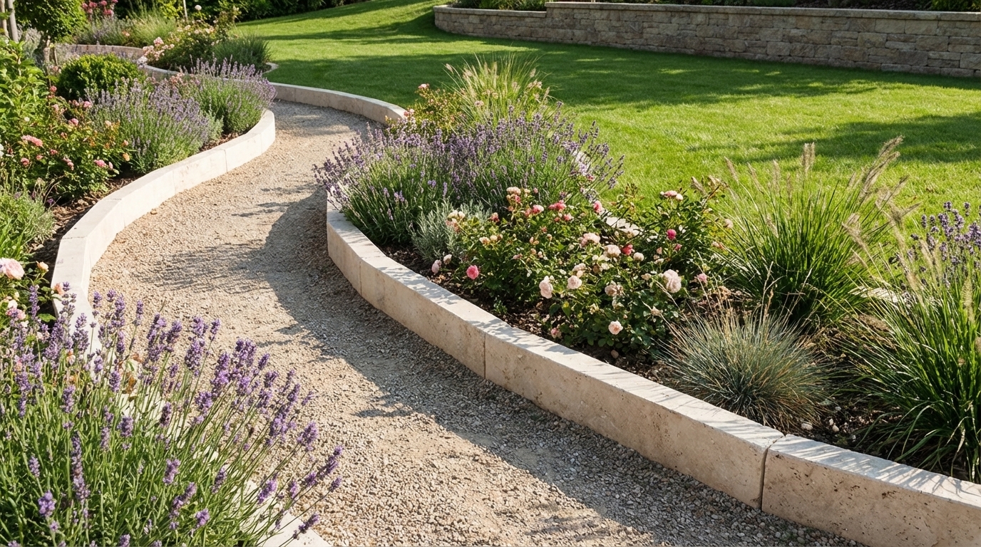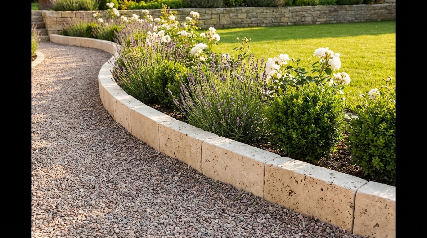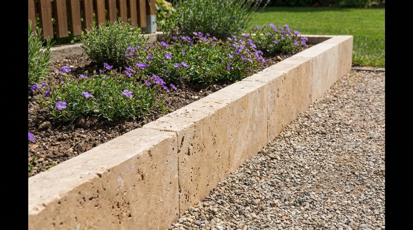 Randsteine aus Travertin eignen sich hervorragend für die Einfassung Ihres Gartens, da sie einen deutlichen Übergang zwischen Ihrem Gartenbeet und Ihrer Einfahrt oder Ihrem Rasen schaffen und so die Pflege erleichtern und für ein gepflegtes Aussehen sorgen. Sie sind einfach zu verlegen.
